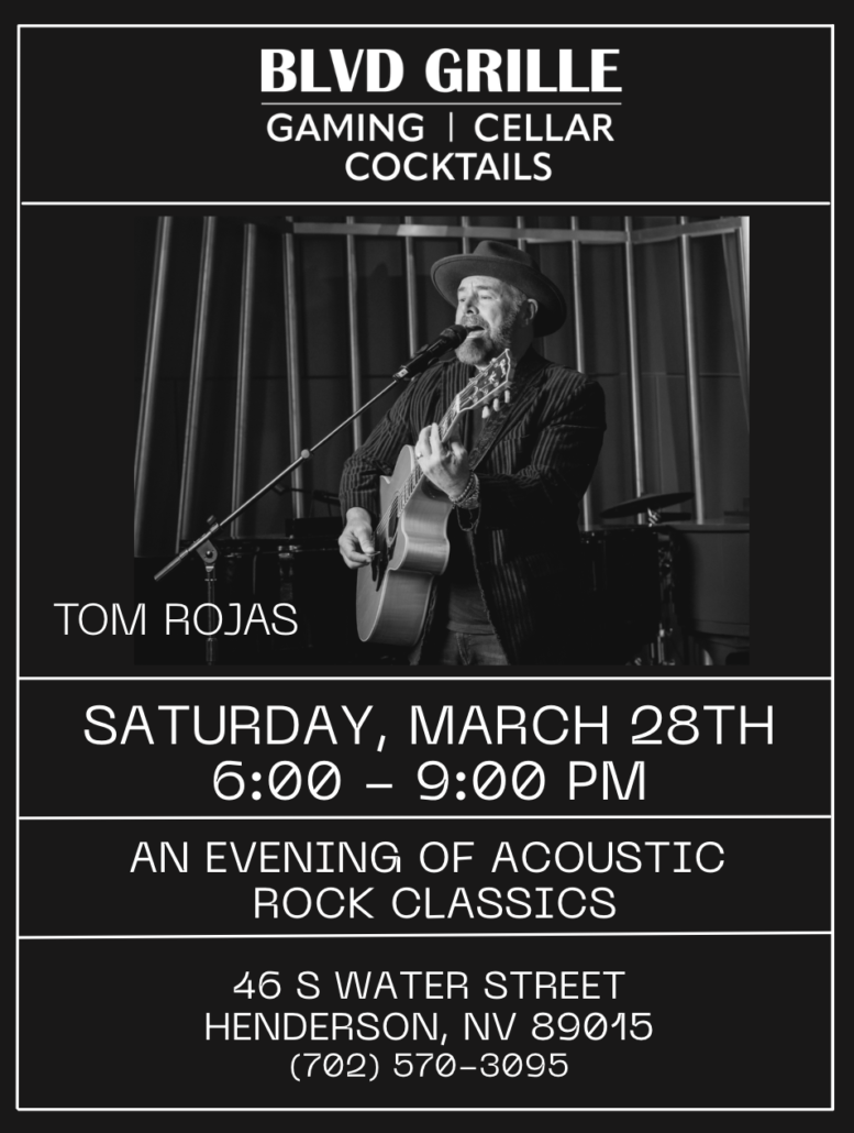 Tom is back on Saturday, March 28th at the BLVD Grille in Henderson, 6:00 pm – 9:00 pm!!